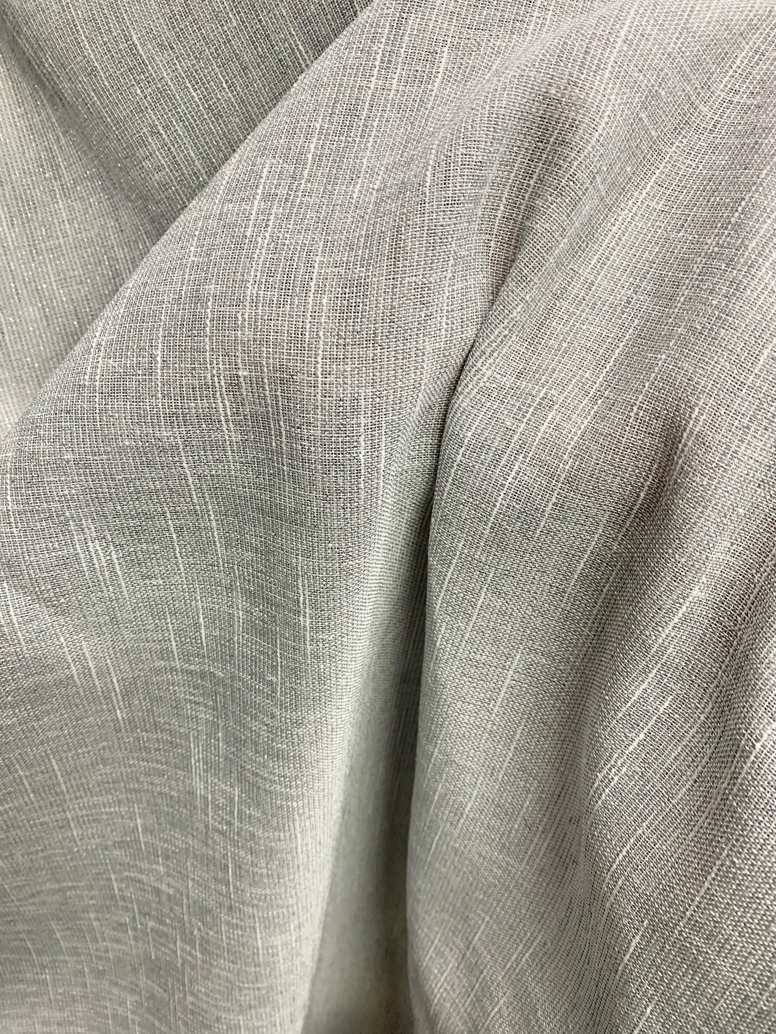 Ihanan ilmava harsomainen verhokangas, jossa hopeista tuiketta.